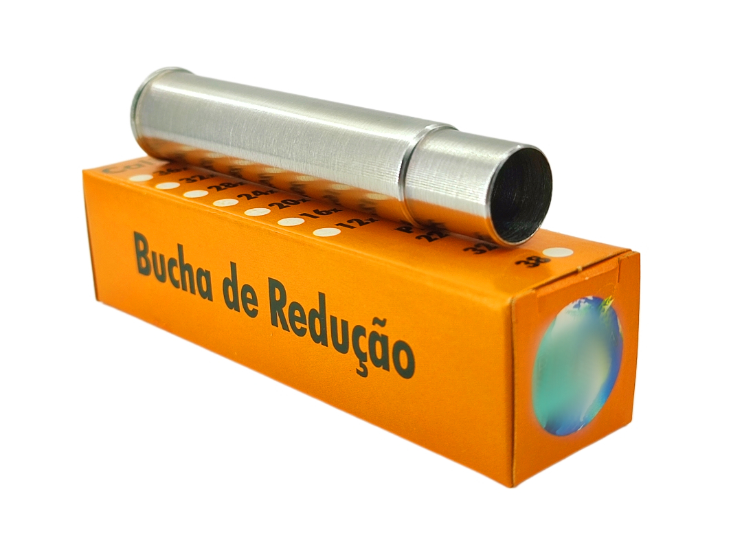 Bucha de Redução 24x32 A bucha de redução 24x32 permite a utilização de cartucho 32 em uma espingada Cal.24. Pode ser colocada e retirada com facilidade de acordo com a sua necessidade. Feita em aço 1045 com acabamento zincado Comprimento de 80mm (8cm) Produto com ótimo acabamento.